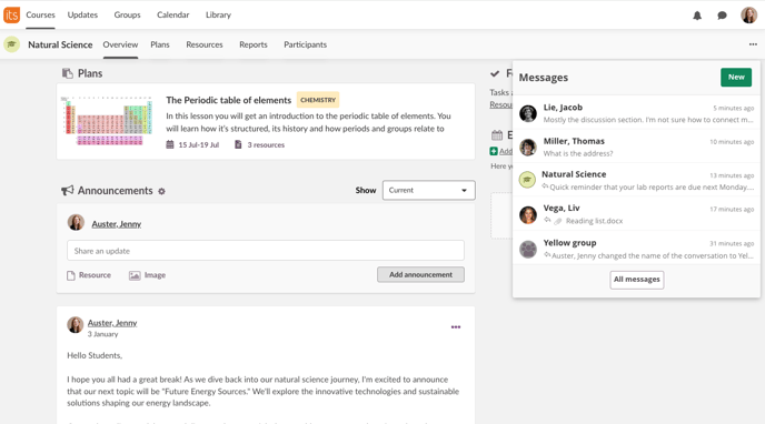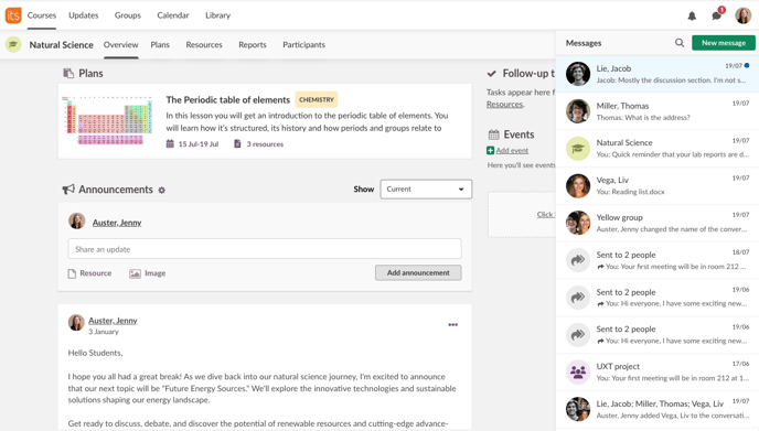 Vi har moderniseret beskedsystemet. Vi vil ikke konkurrere med de mest avancerede Instant Messaging-løsninger derude, men vi vil fokusere på vores brugeres kernebehov. Det vil stadig være nemt for lærerne at nå ud til eleverne, både individuelt og som gruppe.