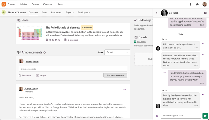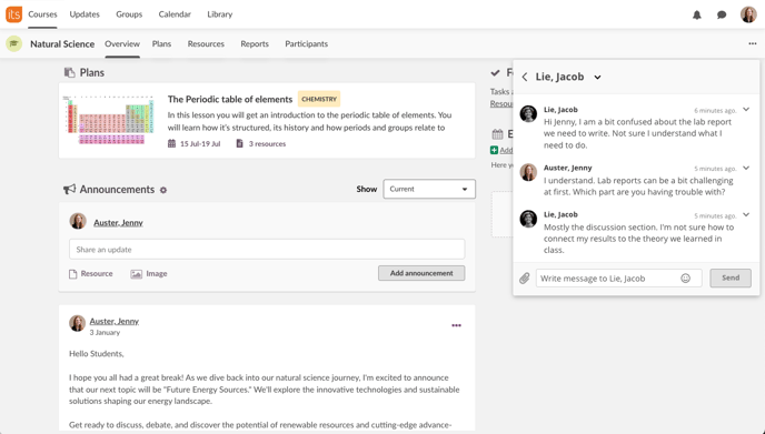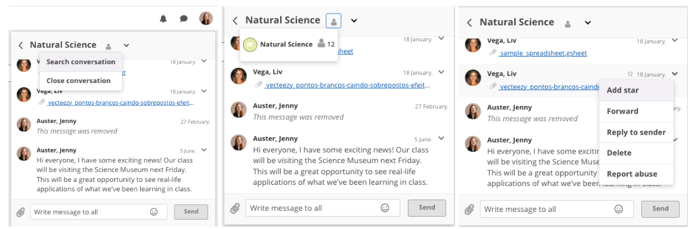 Derudover ønsker vi at give lærere og administratorer mere kontrol over samtaler. De vil kunne fjerne brugere fra en gruppechat, og de kan slette en kursussamtale.